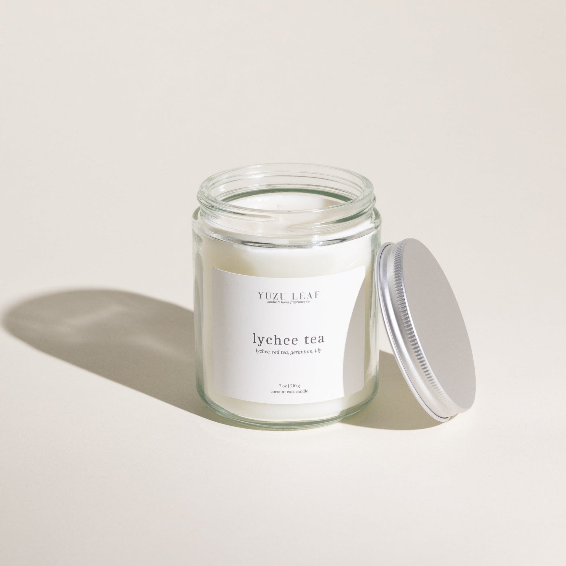 Our Lychee Tea scented candle is a delightful blend of subtly sweet and floral Lychee and soothing red tea. A hint of sugar at the top makes this scent perfect for those âyouâ days and will delight your palette even after youâve put it out. Make your house smell delicious with the Lychee Tea scented candle from Yuzu Leaf Co.